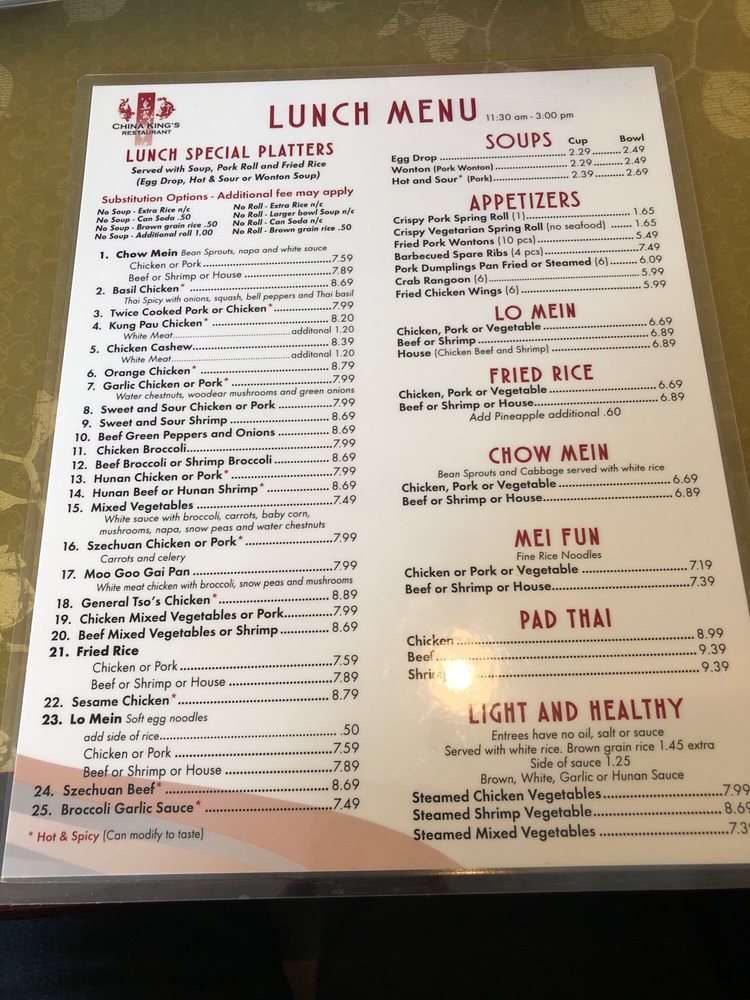 China King’s Restaurant in Leesburg, VA offers a diverse Chinese menu with options for vegans and vegetarians. The restaurant provides takeout, delivery, and catering services, making it convenient for all diners. Known for its authentic flavors and generous portions, customers rave about dishes like Orange Chicken, Kung Pao Chicken, and Beef and Broccoli. The crispy texture of the chicken paired with flavorful sauces impresses even the most discerning palates. The cozy, family-style atmosphere and attentive service add to the overall dining experience. Reviewers consistently praise the hot and fresh food, making China King’s a go-to spot for satisfying Chinese cuisine. Whether you're in the mood for lunch or dinner, this restaurant promises great value and taste that will keep you coming back for more.